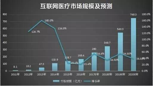 基于醫療剛性需求的不斷擴大,更多優質細分服務的出現,以及用戶對于健康管理意識的增強,互聯網醫療正以前所未有的速度快速發展。照這樣的發展態勢,預計2020年,互聯網醫療的市場規模將以38.52%的增長率達到748.3億元,創下互聯網醫療行業新的記錄。