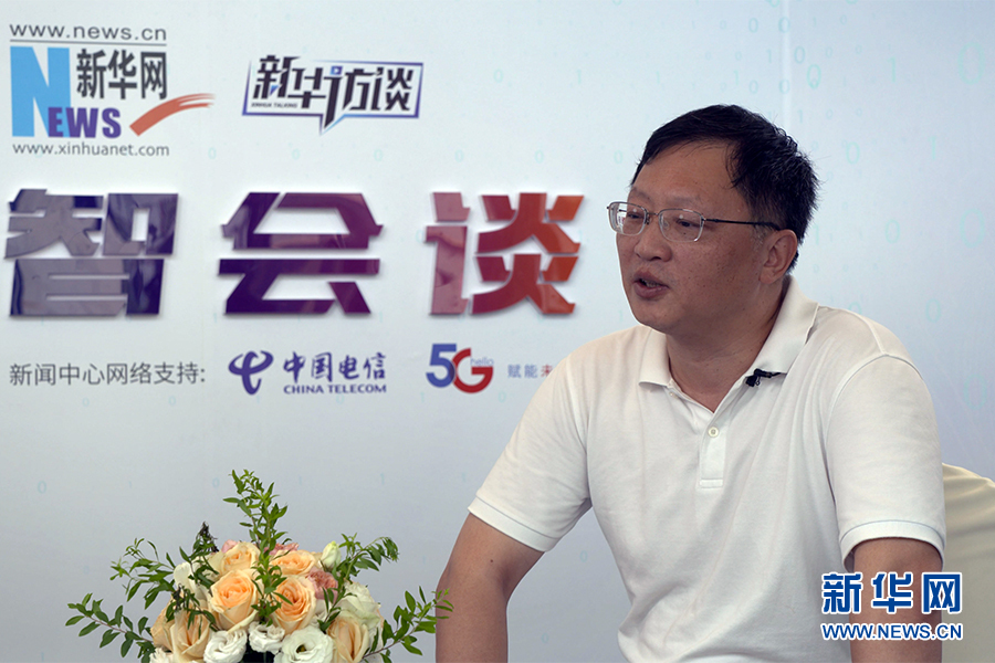 PRESS CENTENR重慶市衛生健康委黨委委員、副主任王衛在智博會期間接受新華網專訪。新華網 黃俊輝 攝