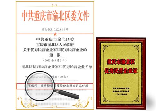 城銀股份總經理王億科榮獲“優秀優秀民營企業家”這一光榮稱號,受到了渝北區委、區政府的通報表揚。
