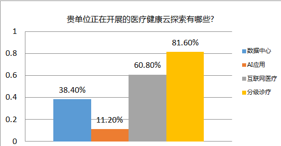 有60.80%的調研對象選擇業務上云,青島大學附屬醫院信息中心主任徐浩此前曾表示,醫院信息科應將官方網站和互聯網業務前置機遷移到公有云端,以應對支付寶微信等交易量大的業務高并發挑戰。