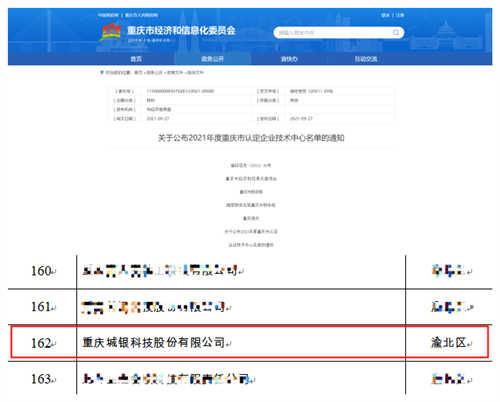 近日,市經濟信息委聯合市財政局、國家稅務總局重慶市稅務局、重慶海關發布了《關于公布2021年度重慶市認定企業技術中心名單的通知》(以下簡稱《通知》),城銀股份榜上有名,成功通過2021年度重慶市企業技術中心認定。